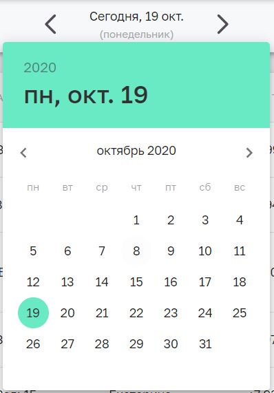 Стрелками "вправо"/"влево" выберите необходимую дату. По-умолчанию выбран сегодняшний день. Нажав на поле с датой, можно быстро перейти на нужное число.